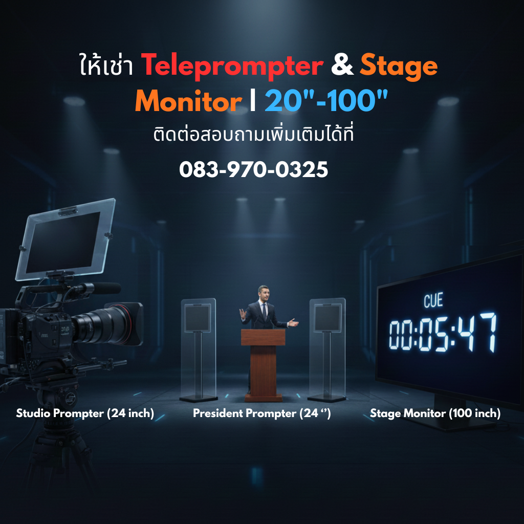 | 8 | Stage Monitor | 50 | 3,000 | จอใหญ่: เหมาะสำหรับเวทีกลางที่ผู้พูดมีการเคลื่อนที่ หรือต้องอ่านสคริปต์จากระยะห่างมากขึ้น |