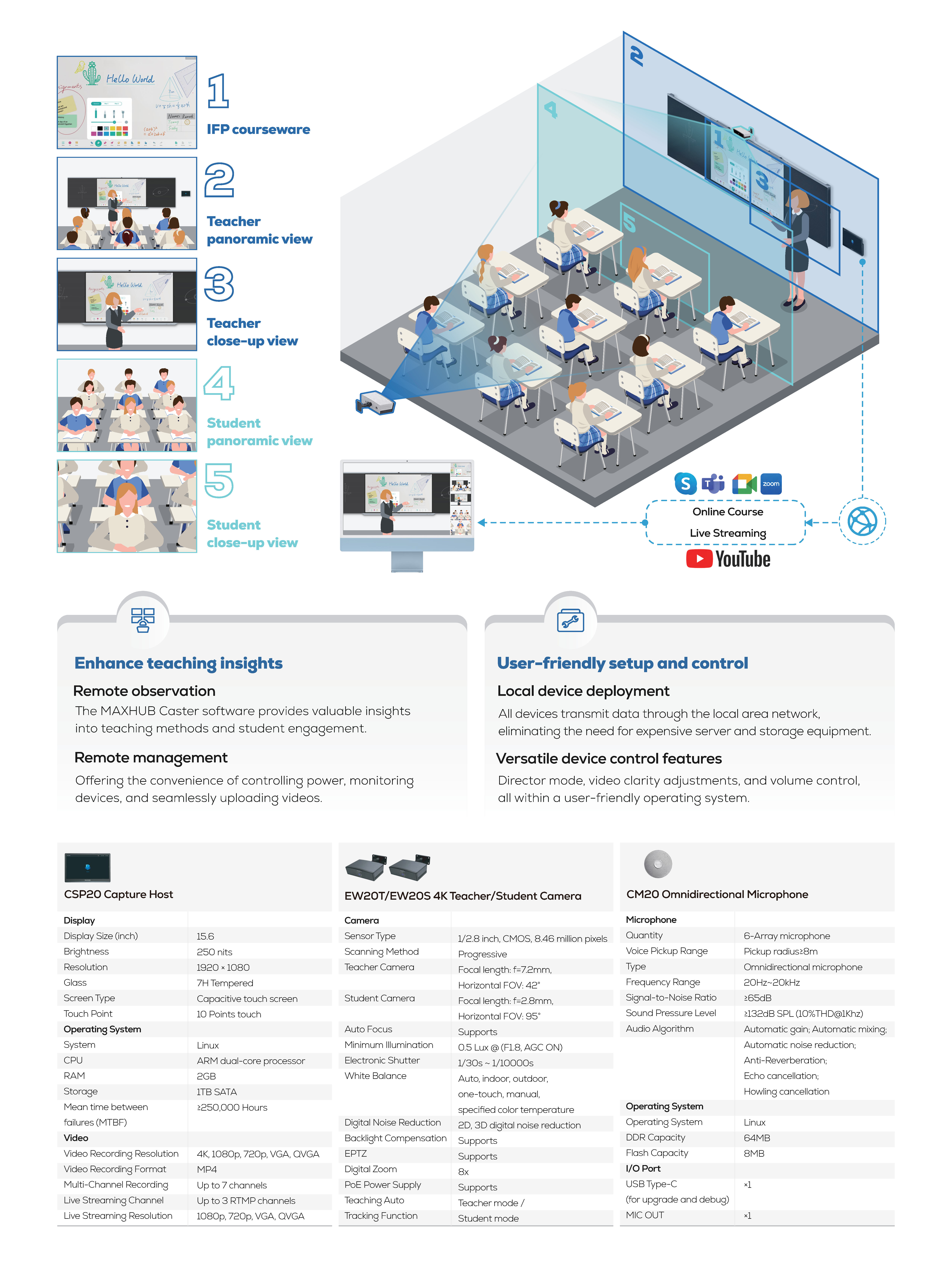 - เข้ากันได้หลักกับ MAXHUB Capture System (CSP20 Capture Host, EW20S Camera, CM20 Microphone).