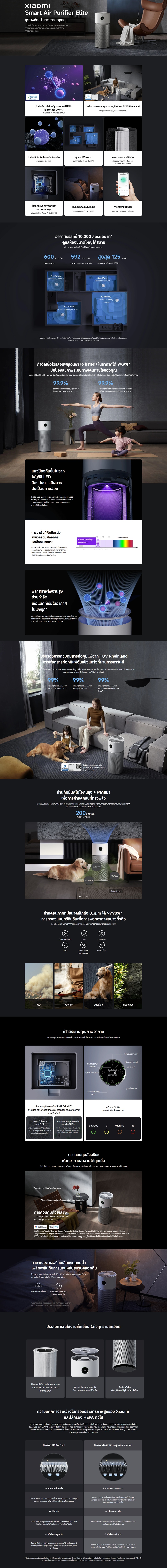 Xiaomi Smart Air Purifier Elite เป็นเครื่องฟอกอากาศที่ออกแบบมาเพื่อยกระดับคุณภาพอากาศภายในบ้านของคุณ ด้วยความสามารถในการฟอกอากาศที่น่าประทับใจและเทคโนโลยีที่ล้ำสมัย เครื่องนี้เป็นตัวเลือกที่ยอดเยี่ยมสำหรับผู้ที่ต้องการอากาศบริสุทธิ์และปราศจากมลภาวะ