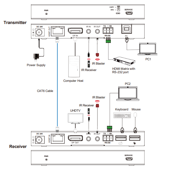 ประเภทผลิตภัณฑ์ | HDBaseT DisplayPort Extender with KVM (TX + RX) |
