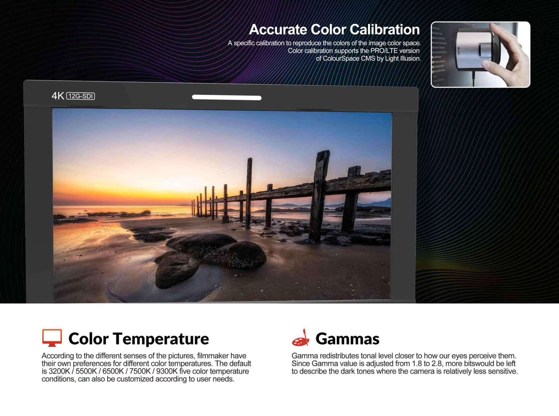 • รองรับ HDR และ 3D LUT: รองรับการแสดงผลแบบ High Dynamic Range (HDR) เพื่อให้แสดงรายละเอียดในส่วนที่สว่างและมืดได้ชัดเจน และรองรับการอัปโหลดไฟล์ 3D LUT (รูปแบบ .cube) ผ่านพอร์ต USB