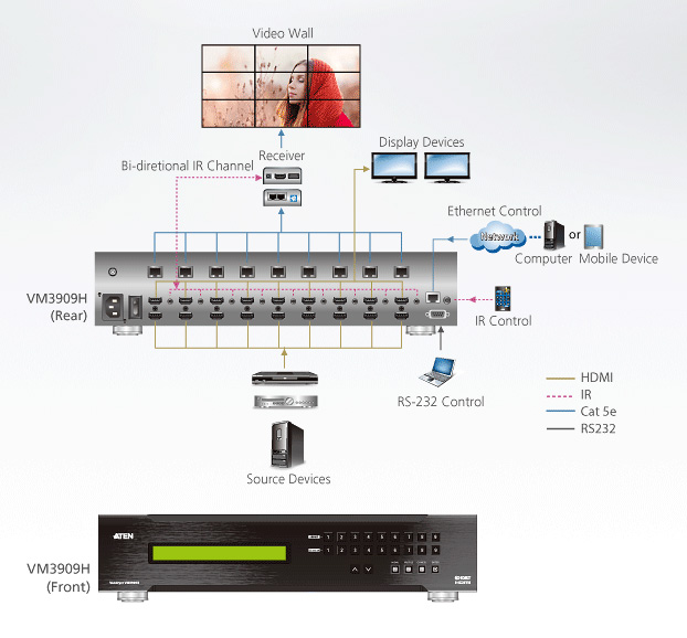 เมื่อ VM3909H ถูกใช้งานรวมกับตัวรับรุ่น VE805R ซึ่งทั้งคู่จะรองรับ เทคโนโลยี ATEN Seamless Switch สลับภาพแบบไม่มีรอยต่อ และการทำงานแบบ Video Wall ซึ่งใช้ตัวประมวลผลกราฟิกแบบ FPGA เพื่อให้แน่ใจว่าวิดีโอได้มีการสตรีมมิ่งอย่างต่อเนื่อง ควบคุมการแสดงผลได้ตามเวลาจริง และการส่งสัญญาณมีเสถียรภาพ จากทุกแหล่งที่มาทั้งหมด
