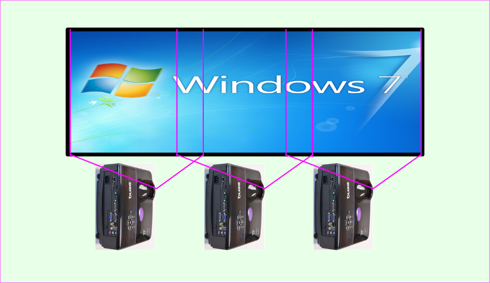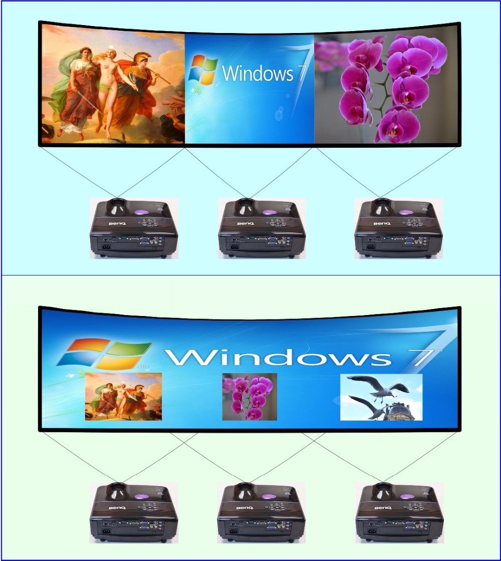 b. 1+2: two projectors shows one content and another one show standalone content.