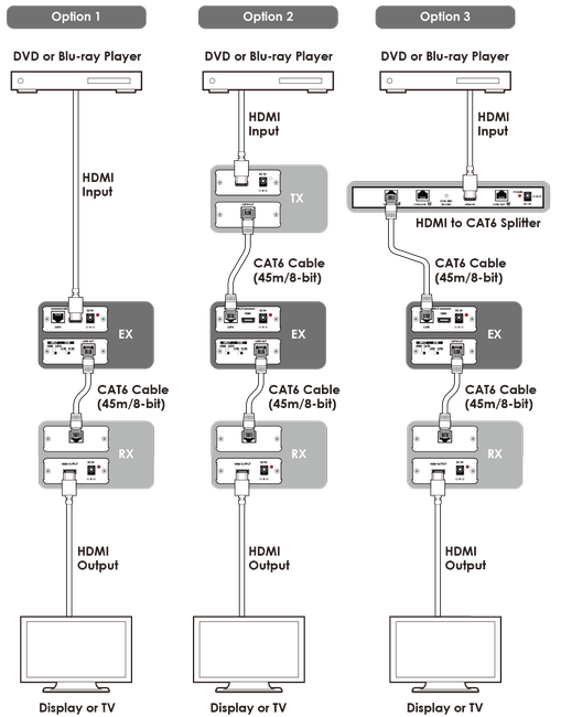 | Inputs | 1x HDMI [1x Uncompressed AV and Data] 1x RJ45 [1x HDMI & Propriety Data] |