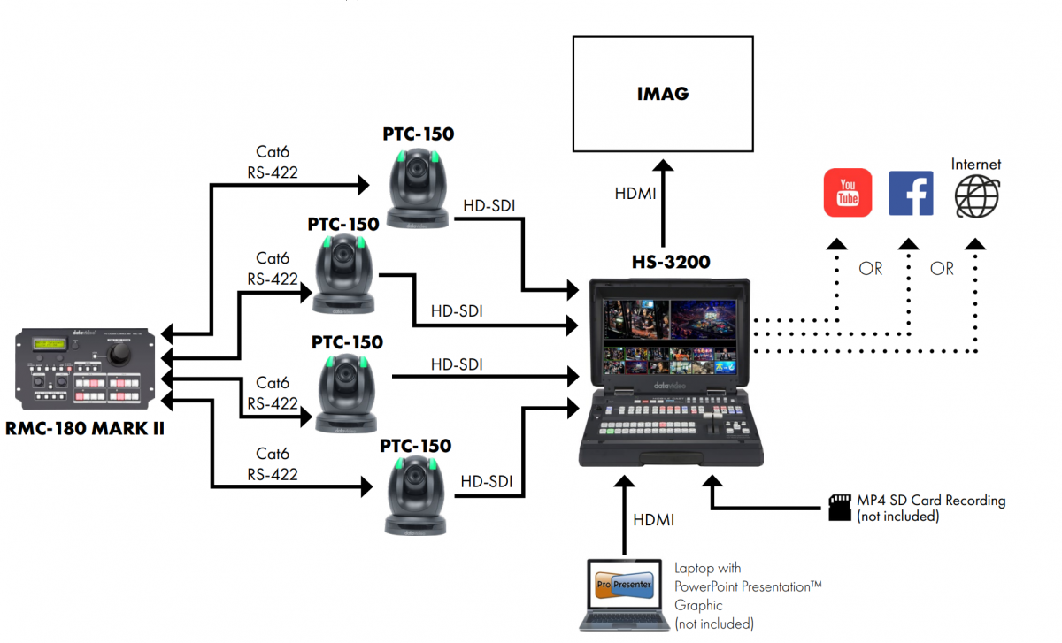 ความสวยงามของกล้อง PTC-150 หลายตัว นั่นคือความสามารถในการควบคุมกล้องทั้งหมดจากแผงควบคุมตัวเดียว โดยสามารถควบคุมกล้องได้สูงสุด 4 ตัว ผ่าน RMC-180 series controller และคุณยังสามารถลดทีมงานในการควบคุมกล้องให้เหลือเพียงคนเดียว