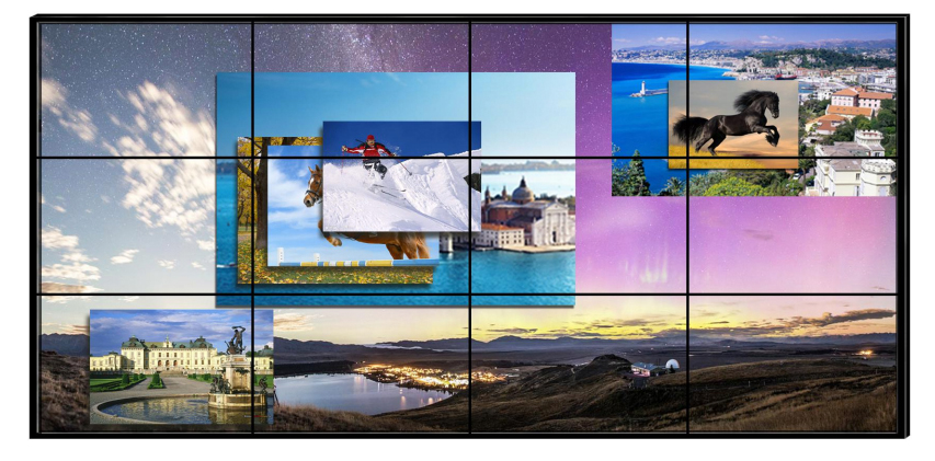 Simultaneously display 8 same or different signal images on the splicing screen, and size, location and hierarchical relationship of each image can be adjusted independently.